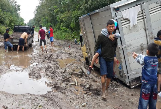 Akhirnya, warga bergotong royong mendorong mobil agar bisa lepas dari jebakan jalan berlumpur tersebut. Penumpukan lalu lintas pun tak terhindarkan, akibat adanya mobil yang terjebak jalan."Kondisi seperti ini jelas mempersulit sopir. Apalagi tidak berhati-hati, mobil bermuatan bisa terguling,"ujar Fredi(50) sopir mobil Colt Diesell yang mengangkut peralatan rumah tangga.