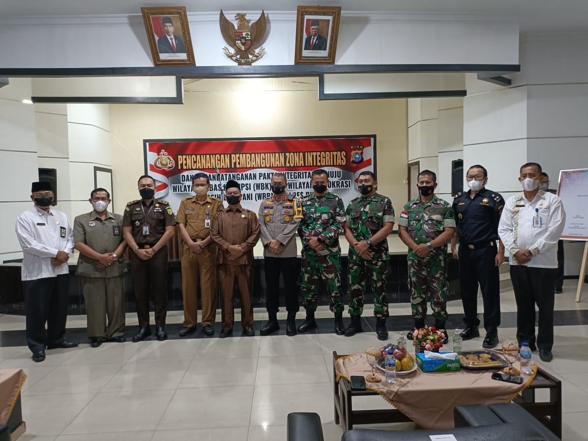 DUMAI (MR) - Dandim 0320/Dumai Letkol Arh Hermansyah Tarigan, S.E. menghadiri kegiatan Pencanangan Pembangunan zona Integritas dan penanda tanganan fakta integritas menuju wilayah Bebas Korupsi (WBK) dan Wilayah Birokrasi Bersih Melayani (WBBM) di Lingkungan Polres Dumai.