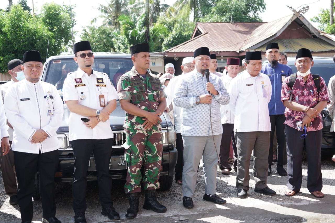 Kegiatan yang dilaksanakan di Halaman Masjid Besar Arafah Duri Kecamatan Mandau, Rabu(22/06/2022) ini, melepas keberangkatan tujuh puluh satu (71) orang Calon Jemaah Haji (CJH) asal Kecamatan Mandau, Bathin Solapan dan Pinggir.
