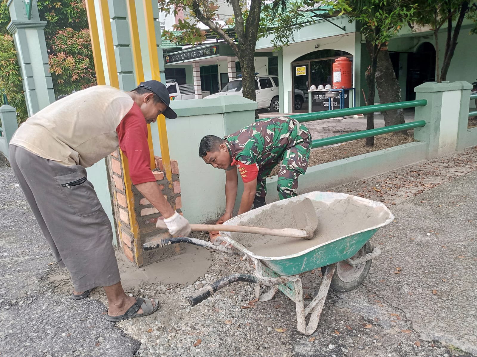 DUMAI (MR) - Kodim 0320/Dumai melalui Babinsa Koramil-01 Kelurahan Sukajadi Kecamatan Dumai Kota Serda Ahmad Junaidi, melakukan giat Gotong Royong untuk membangun Gapura.