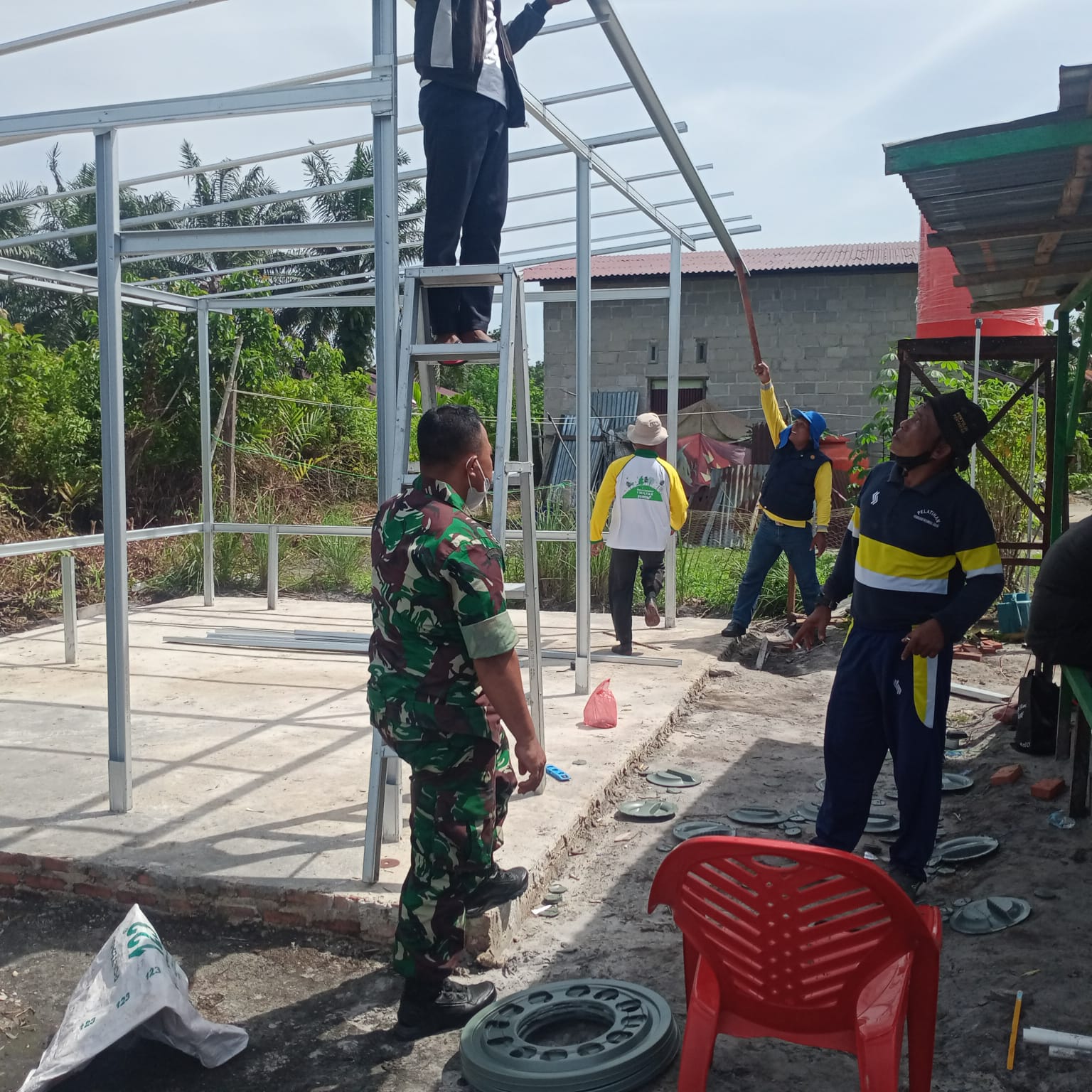 DUMAI (MR) - Babinsa Koramil 02/BK Pelda Joko bersama dengan Penyuluh Pertanian Lapangan (PPL) kecamatan Bukit Kapur Samsul Huda dan Ghudapi serta perwakilan Kelompok Wanita Tani (KWT) Mawar Anita, Menghadiri kegiatan pembuatan rumah bibit, (4/7).