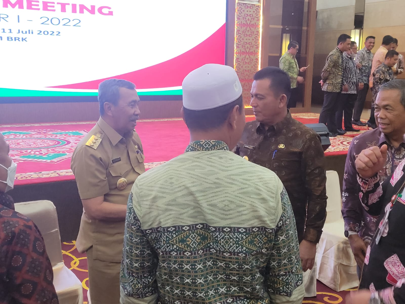 KEPRI (MR) - Gubernur Kepulauan Riau H. Ansar Ahmad menghadiri Rapat Evaluasi Kinerja Semester I Tahun 2022 yang diselenggarakan oleh Bank Riau Kepri di Ballroom Lt.4 MDM BRK Syariah Pekanbaru, Senin (11/07). Pertemuan tersebut membahas beberapa agenda salah satunya adalah progres konversi Bank Riau Kepri (BRK) menjadi BRK Syariah.