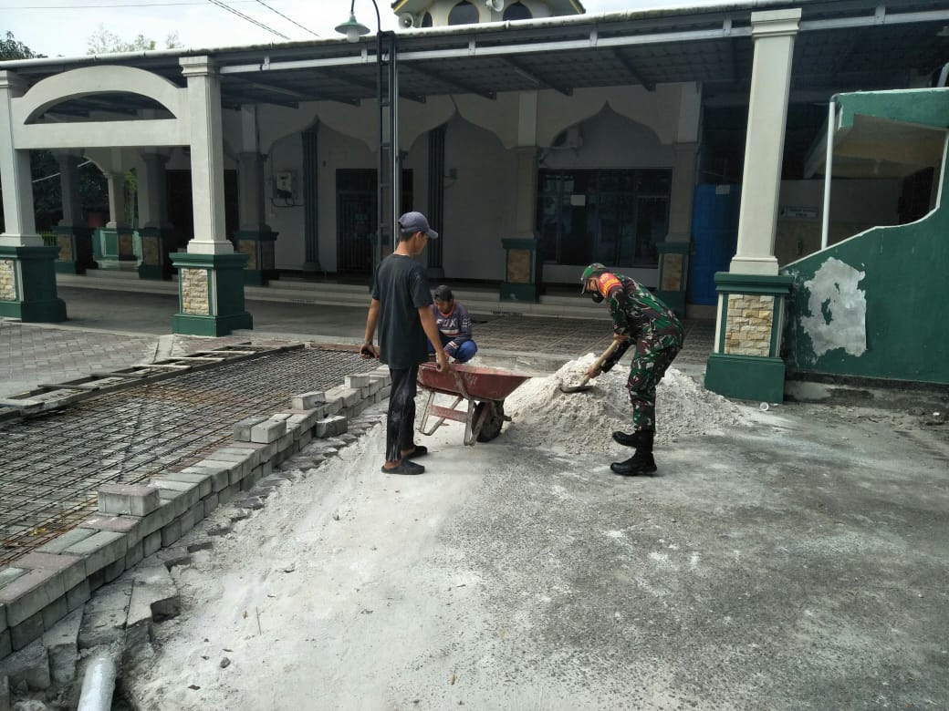 "Untuk menghias halaman mesjid Al Firman ini, maka dilakukanlah pemasangan paving blok, serta kami berharap dapat mencegah para jamaah yang hadir dari terkena kotoran serta jalan menjadi becek," jelas Serda Boby.