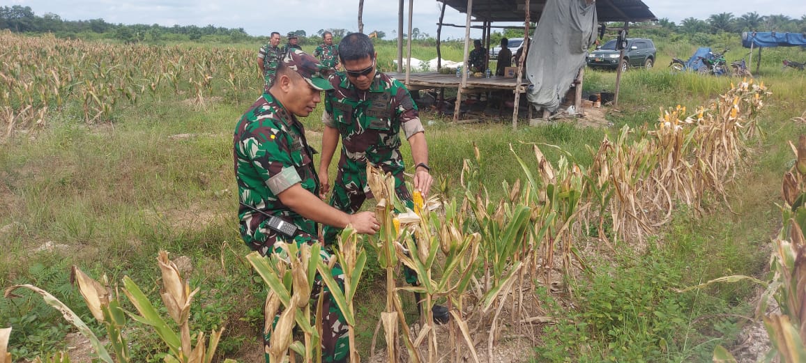 DUMAI (MR) - Komandan Kodim 0320/Dumai Letkol Arh Hermansyah Tarigan SE. dampingi Kunjungan Kerja Kasrem 031/WB Kolonel Inf Hanzen Sianturi,SIP.MM beserta Kasiter Rem 031/WB Letkol Inf Hipni Maulana Farhan meninjau lahan pembinaan ketahanan pangan Tanaman Jagung Kodim 0320/Dumai di Jalan Melati RT 09 Kelurahan Tanjung penyebal Kecamatan Sungai Sembilan, (12/7).
