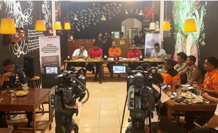 Kepala Sub Direktorat Pengendalian Kebakaran Hutan dan Lahan Anis Susanti Aliati dari Kementerian Lingkungan Hidup Republik Indonesia, Badan Penanggulangan Bencana Daerah Provinsi Riau dan Kabupaten Kota se Provinsi Riau, dengan moderator Ketua JKR, Satria Utama Batubara.