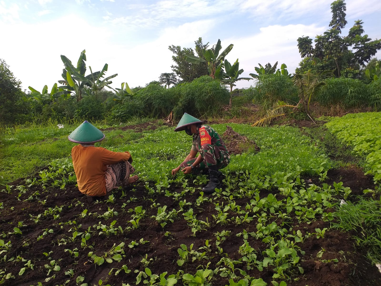Suasana keakraban antara Babinsa dan pemilik lahan sangat terasa, terlihat pemilik lahan sangat serius mendengarkan dan mempraktekkan apa saja arahan dari sertu Sugianto.