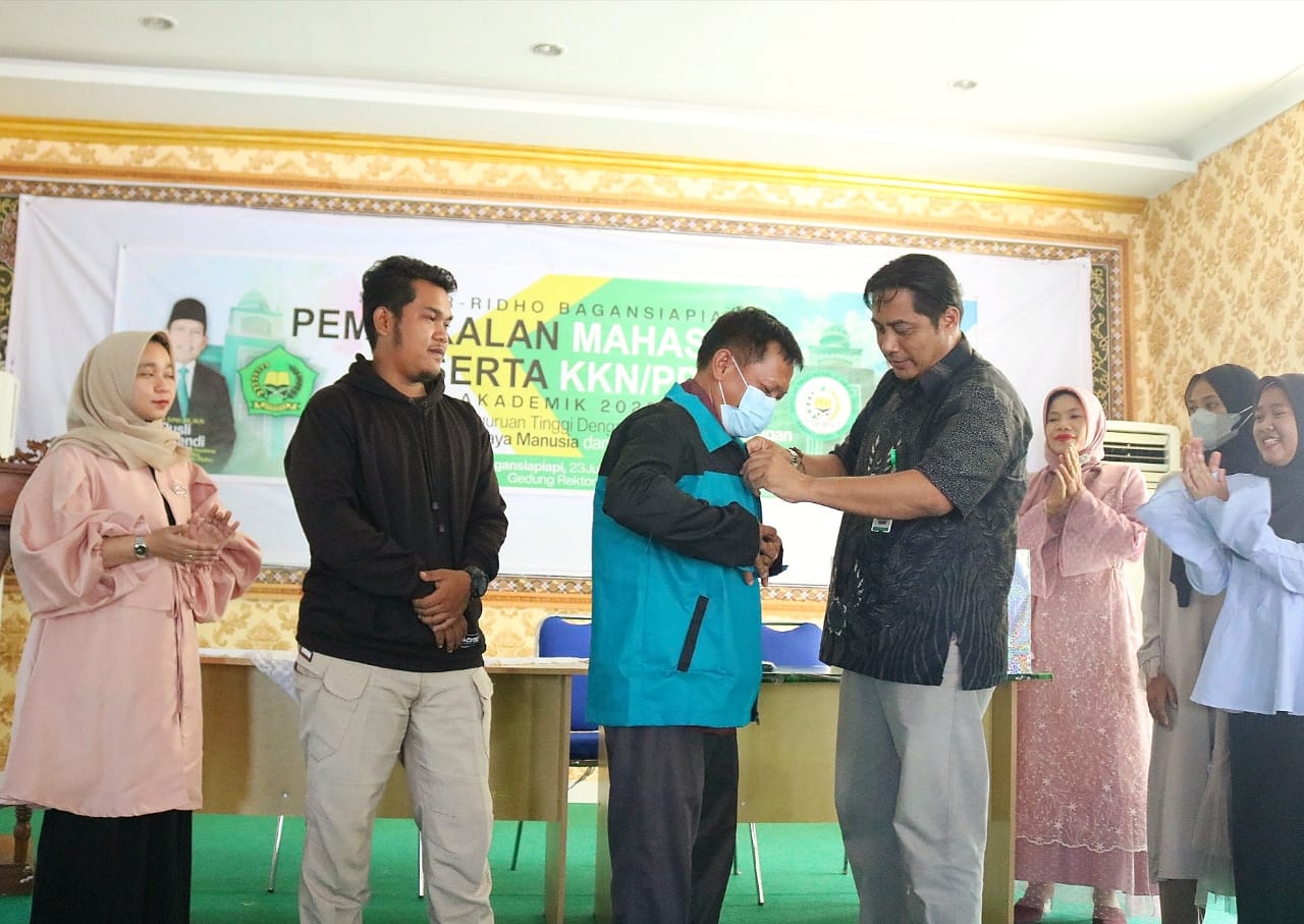 Pembekalan KKN/PPL tersebut juga ditandai dengan penyerahan Almamater secara simbolis dari Ketua STAI Ar-Ridho Bagansiapipai, Dr (Can) Budi Setiawan, M.Pd kepada salah satu perwakilan Mahasiswa KKN/PPL Angkatan Ke- X, Wisman Sinaga dari Prodi KPI dan beberapa orang Mahasiswa dari prodi lainnya. (Wisman)