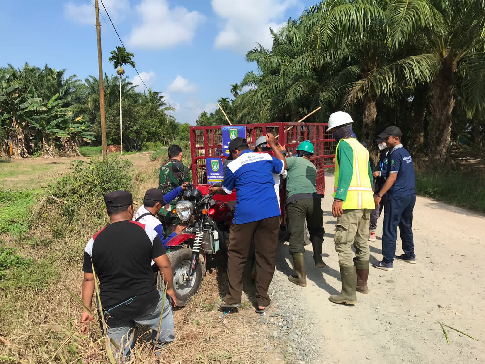 DUMAI (MR) - Agar terus bisa menjalin hubungan yang harmonis dan baik dengan masyarakat, Babinsa Kelurahan Bagan Keladi Kopda Andri Waluyo Melaksanakan Giat Gotong royong, (2/8).