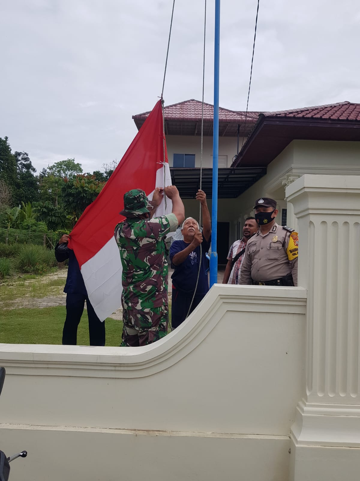"Kami meminta dan menghimbau kepada masyarakat agar hendaknya memasang bendera merah putih di depan rumahnya masing-masing," Kata Serda Roni.