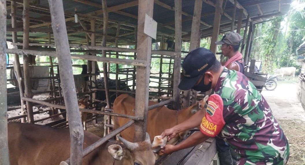 Selain melakukan pengecekan terhadap hewan ternak milik warga, Babinsa Sertu Abu Kasim juga memberikan edukasi dan sosialisasi terkait PMK (Penyakit Mulut dan Kuku) kepada pemilik ternak sapi.