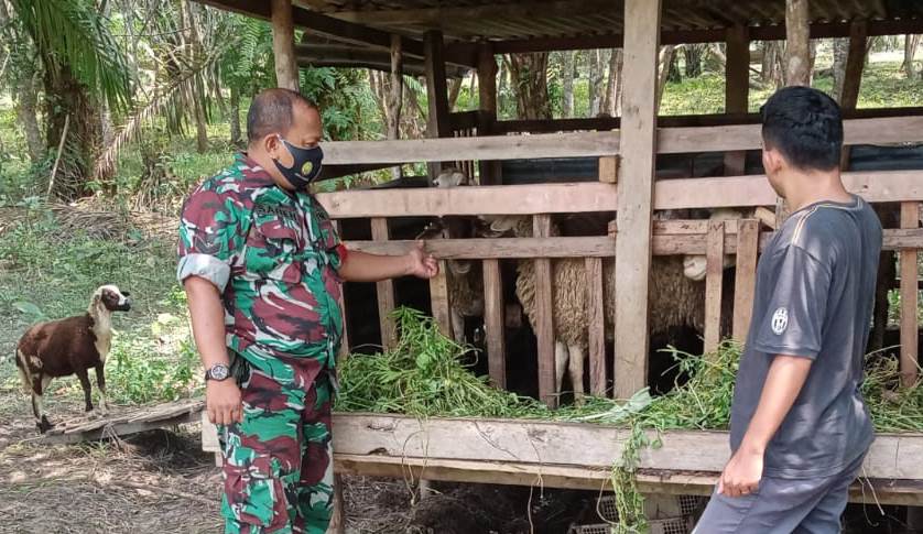 DUMAI (MR) - Anggota Koramil 02/BK Sertu Sareh melaksanakan pengecekan hewan ternak kambing, di Kelurahan Bagan Besar, (10/8).