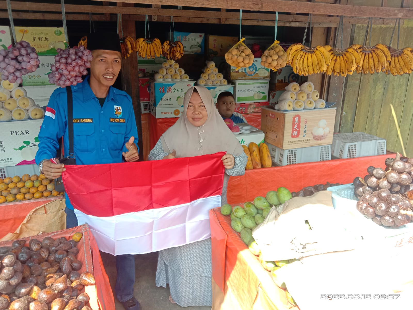 DUMAI (MR) - Dewan pimpinan kecamatan Komite Nasional Pemuda Indonesia ( DPK KNPI ) Dumai Barat berserta Camat Dumai Barat dan Kapolsek kecamatan Dumai Barat bersinergi menghimbau kepada masyarakat terkhusus warga kecamatan Dumai Barat untuk memasang bendera merah putih bentuk dari memeriahkan hari kemerdekaan Republik Indonesia yang ke 77, Juma't(12/08/22).