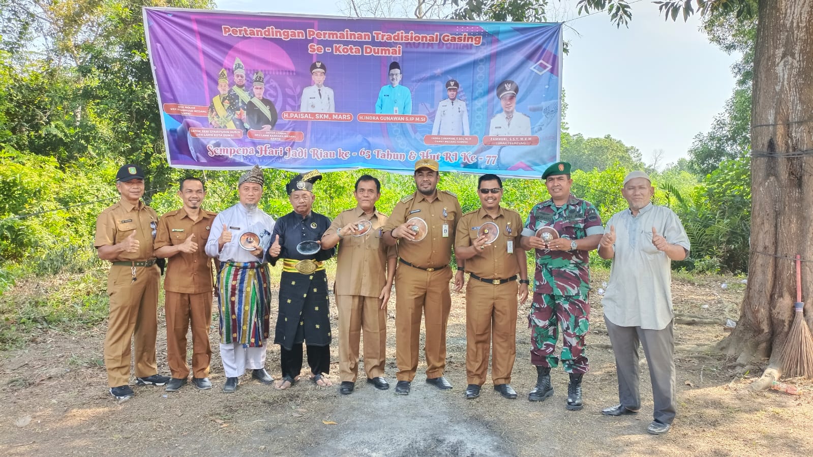 Datuk Atan Ujang (Ketua Majelis Kerapatan Adat LAMR Dumai), Zamhuri (Lurah Pelintung), Ketua RT se Kelurahan pelintung dan Peserta lomba gasing.