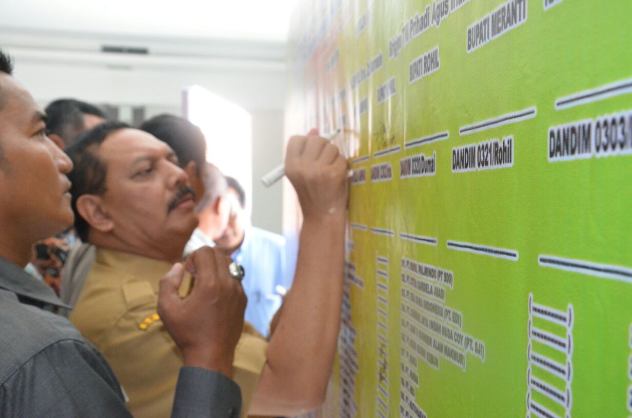 Acara itu juga dilanjutkan dengan penandatanganan komitmen bersama pemerintah Daerah, TNI, Polri dengan pelaku usaha perkebunan/kehutanan dalam rangka pencegahan kebakaran hutan dan lahan di Provinsi Riau tahun 2017.***(adv/diskominfo)