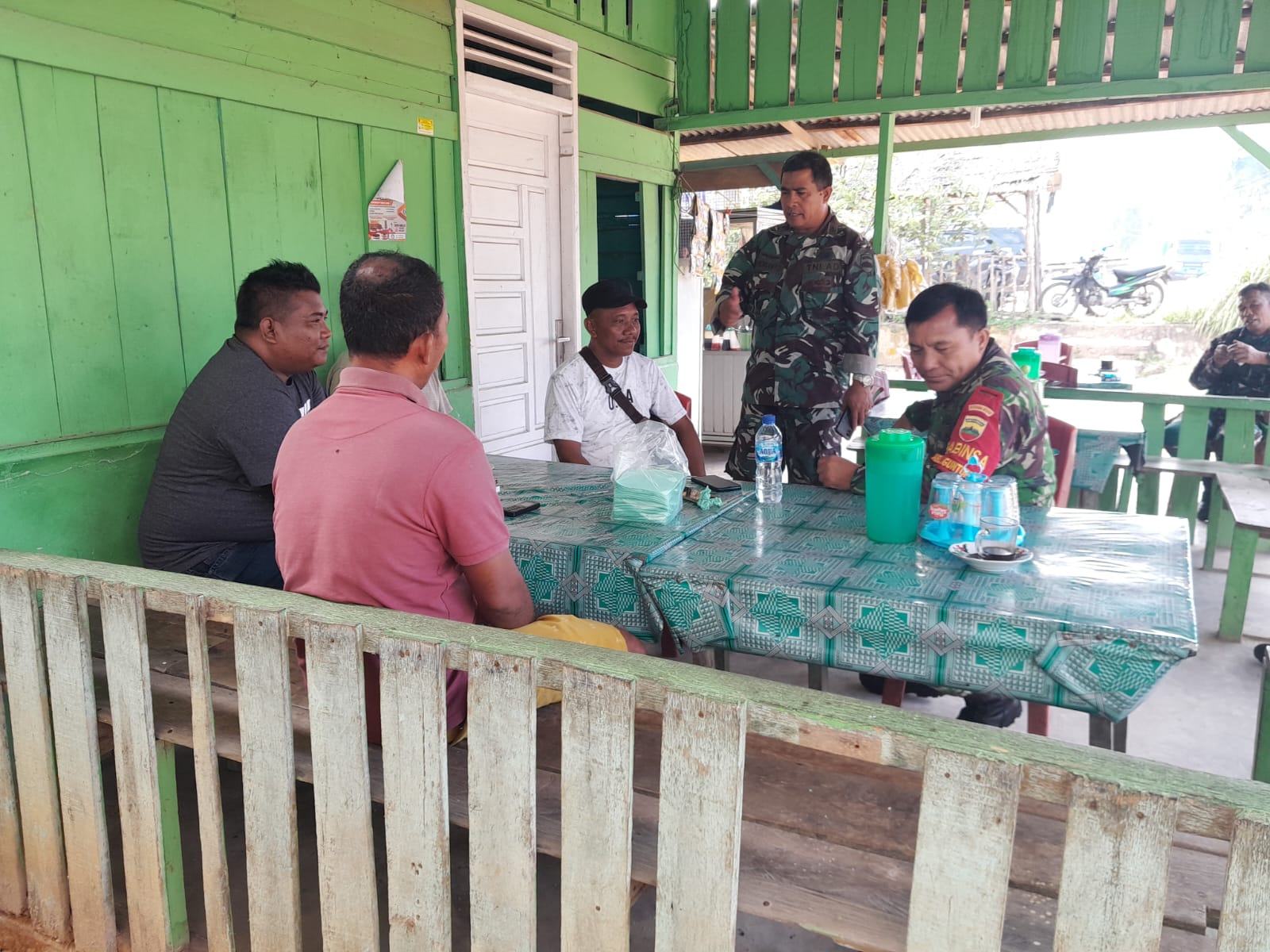 Para Babinsa ini mendatangi warung-warung dan rumah masyarakat yang berada di sekitaran wilayah binaan mereka.