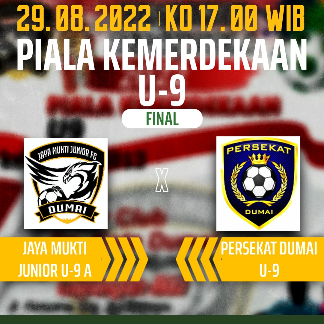 DUMAI (MR) - Turnamen sepakbola U-9 bertajuk Piala Kemerdekaan tahun 2022 mempertemukan tim tuan rumah, Jayamukti Junior (JMJ FC) dengan SSB Persekat Dumai di Partai Final.