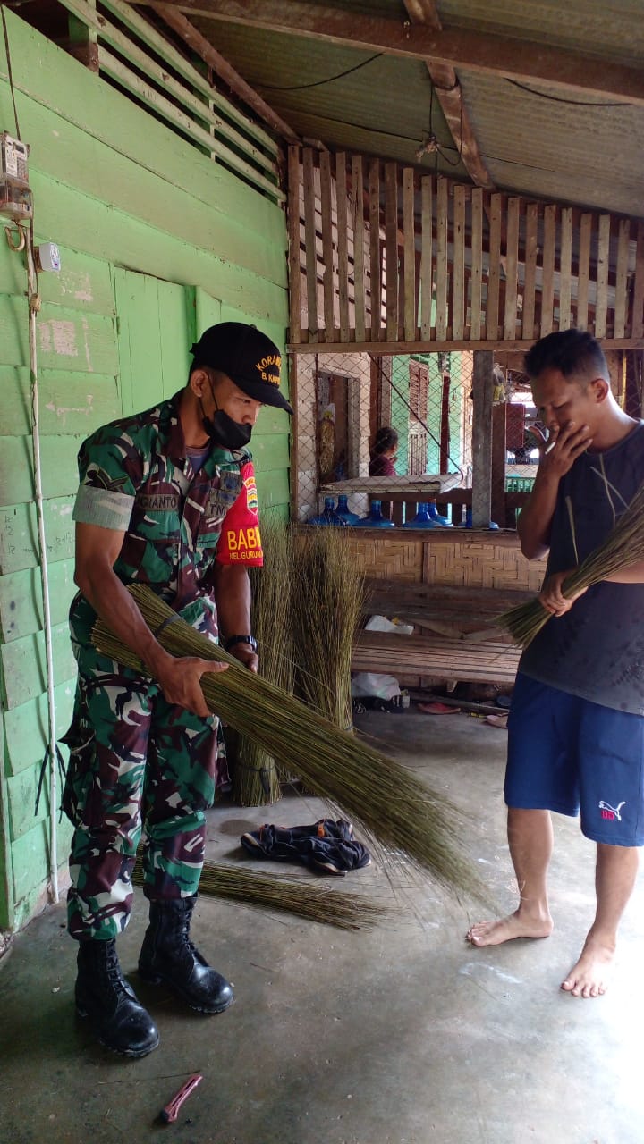 DUMAI (MR) - Babinsa Koramil 02 Serda Sugianto, Melaksanakan Pendampingan kepada pengerajin Sapu Lidi.