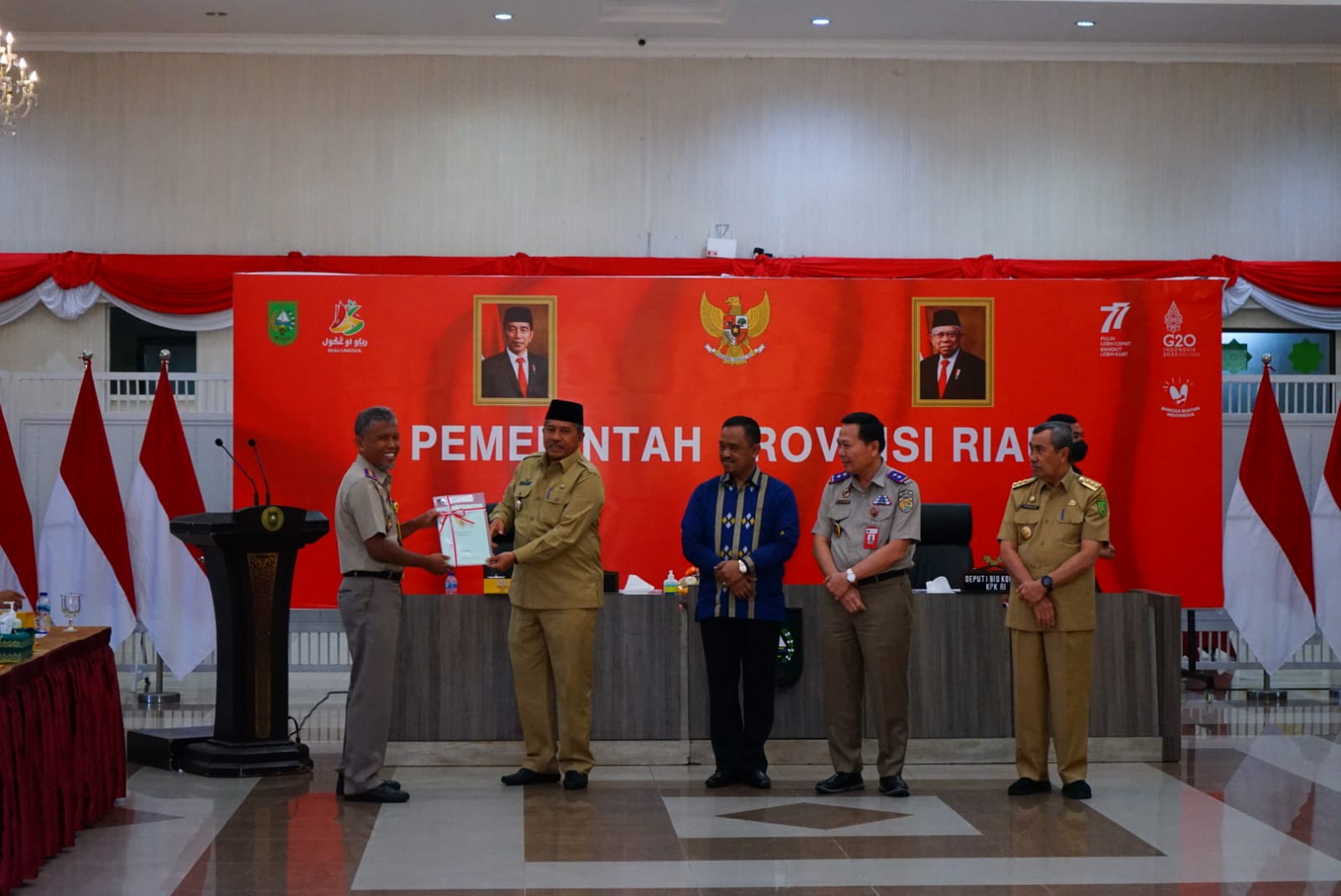 PEKANBARU (MR) - Bupati Siak Alfedri Rapat Koordinasi Program Pemberantasan Korupsi Terintegrasi bersama Pimpinan KPK dan Kepala Daerah se Riau, rakor ini berlangsung di Gedung Daerah Balai Serindit Komplek Gedung Daerah Provinsi Riau Kota Pekanbaru, selasa (30/8/2022).