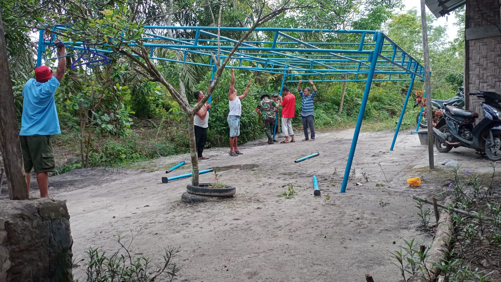 "Hari ini saya bersama masyarakat membantu pembongkaran tenda di salah satu rumah warga, kamu secara gotong royong dan sukarela Membantu tuan rumah," Katanya.