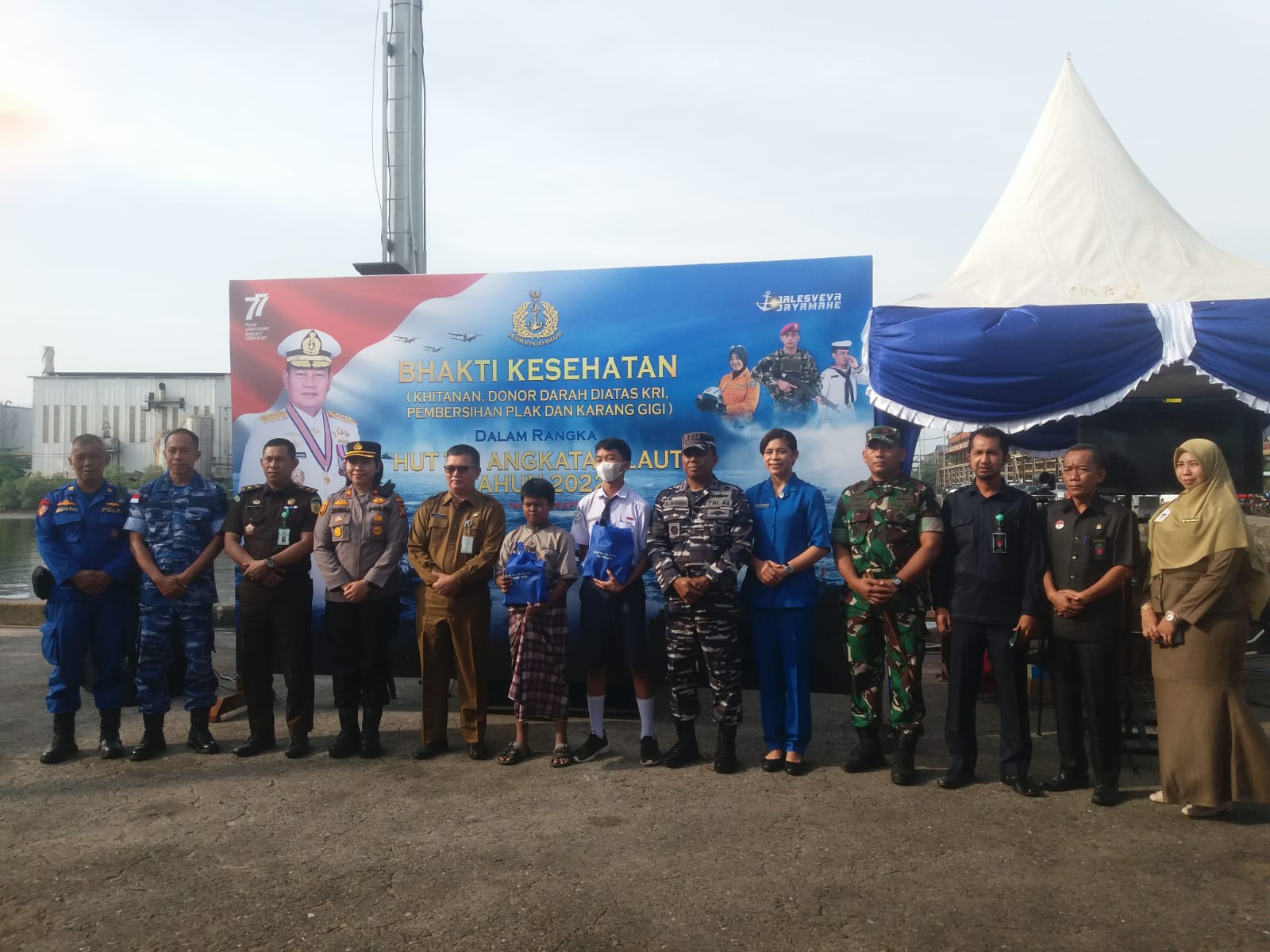 DUMAI (MR) - Dandim 0320/Dumai Letkol Arh Hermansyah Tarigan SE. hadiri Bhakti Kesehatan dalam Rangka Hut TNI Angkatan Laut Tahun 2022 bertempat di Dermaga C Pelindo 1 Dumai, (6/9).