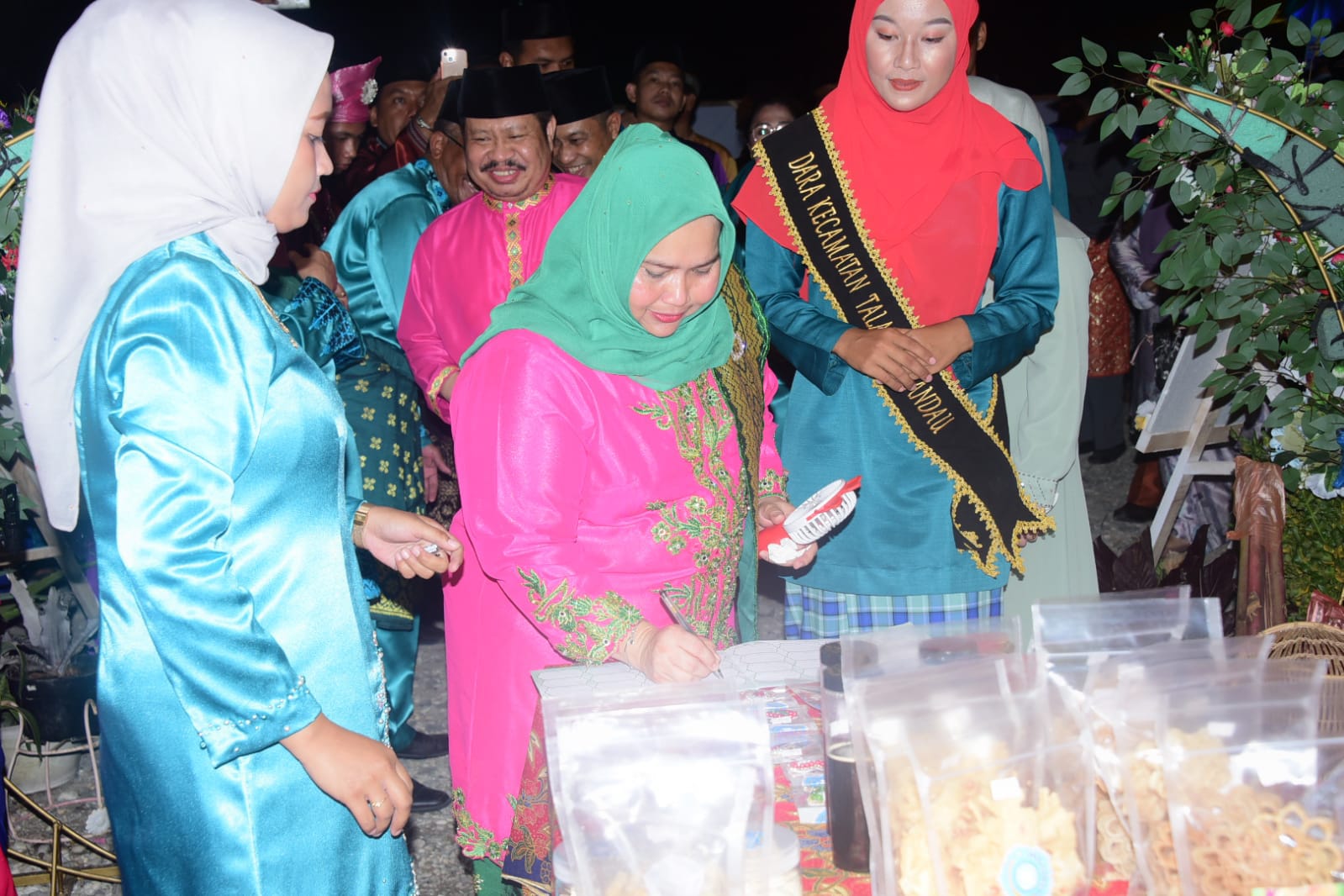 Tiba di lokasi Bupati Bengkalis didampingi para rombongan langsung meresmikan stand bazar, kemudian dilanjutkan kunjungan ke semua stand bazar. Stand bazar Kecamatan Talang Muandau menjadi tempat yang pertama kali di kunjungi Bupati bersama rombongan.