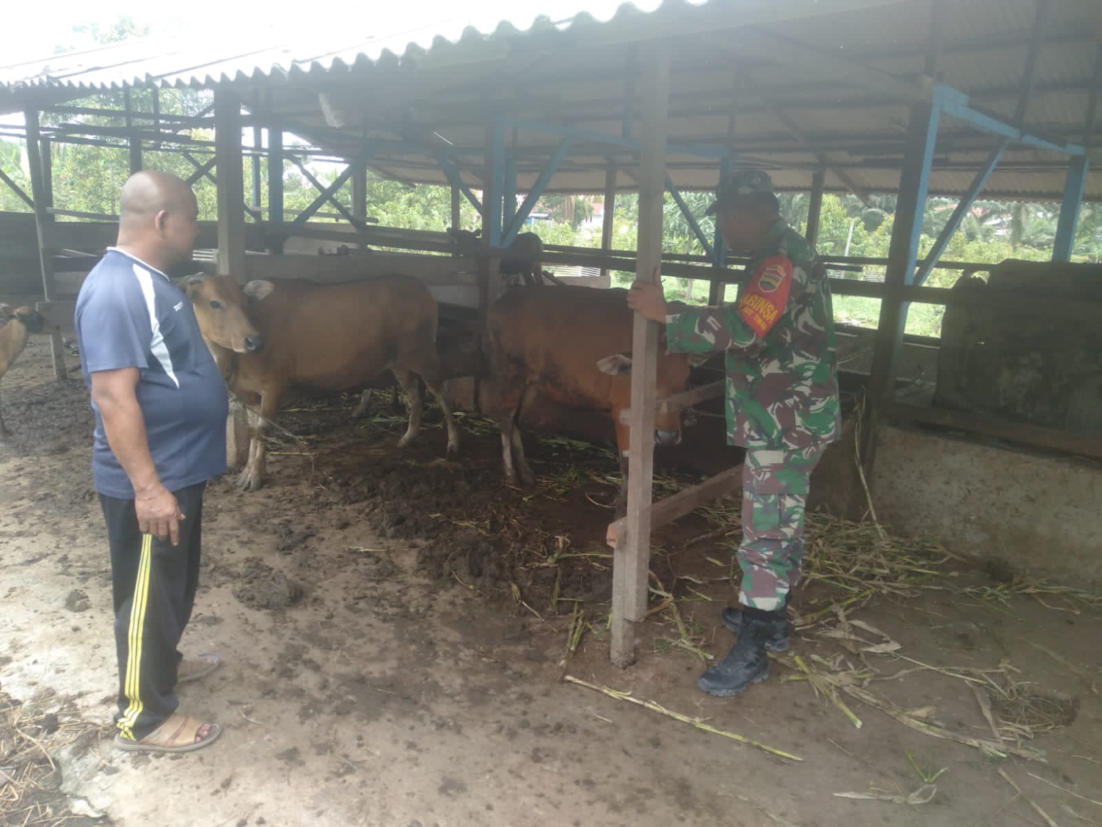 Selain melakukan pengecekan terhadap hewan ternak milik warga, Babinsa Serka Fahrizal Purba juga memberikan edukasi dan sosialisasi terkait PMK (Penyakit Mulut dan Kuku) kepada pemilik ternak sapi.