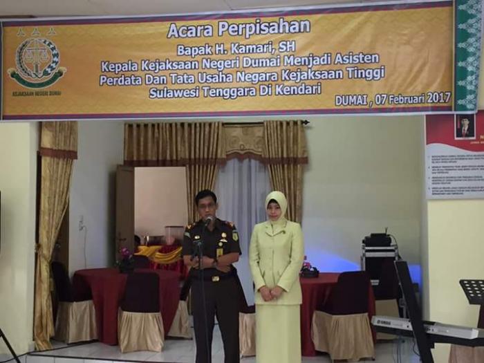Dimana selama ini Kepala Kejari Kota Dumai digawangi Kamari SH, harus mengakhiri tugasnya dan mendapat tugas baru sebagai Asisten Perdata dan Tata Usaha Negara (Datun) pada Kejaksaan Tinggi (Kejati) Kendari, Provinsi Sulawesi Tenggara.
