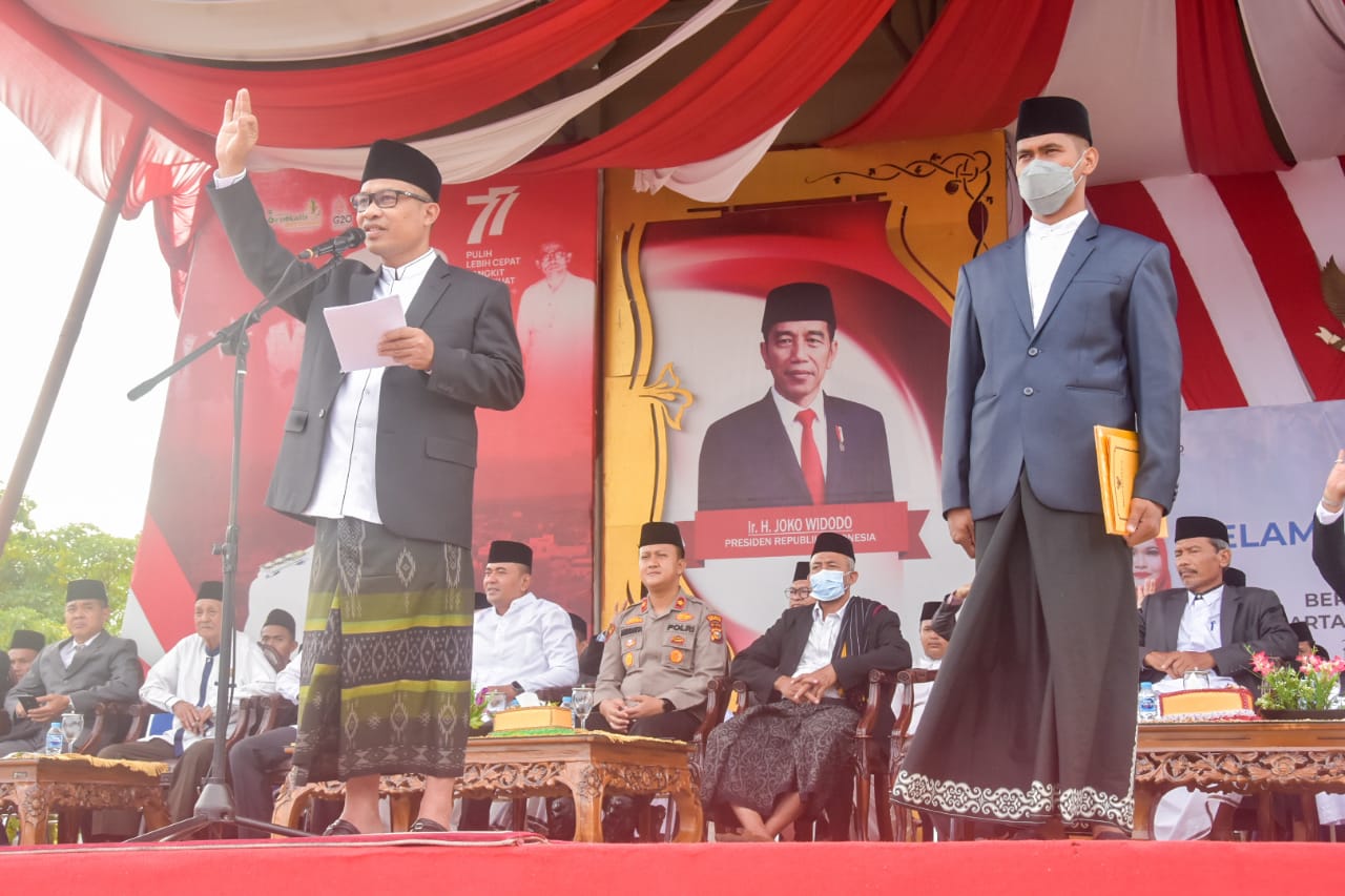 Bupati Bengkalis Kasmarni diwakili Wakil Bupati Bengkalis H Bagus Santoso, menjadi inspektur upacara peringatan Hari Santri tahun 2022 tersebut.