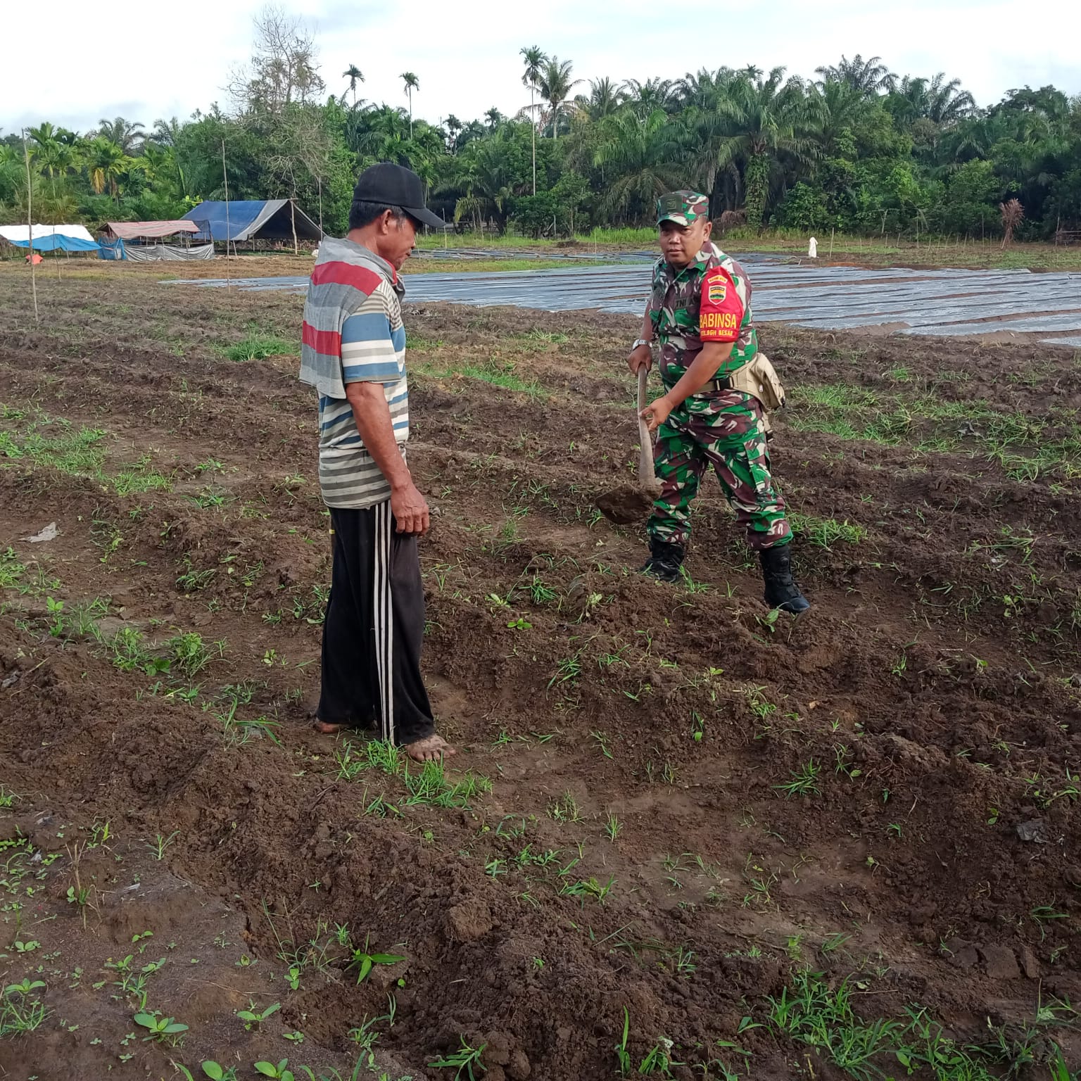 Disini, sertu Sareh mendampingi para petani dari melaksanakan pembibitan sampai dengan pembersihan lahan yang nantinya akan ditanam cabe keriting.