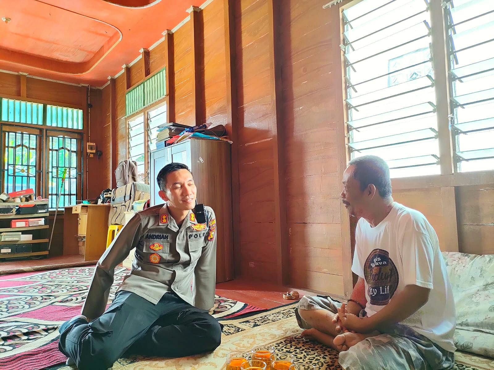 Kapolres Rohil AKBP Andri Pramudianto SIK,.SH.M.Si sambangi Syamsul yang tengah sakit di kediamannya di Baganjawa Bagansiapiapi.