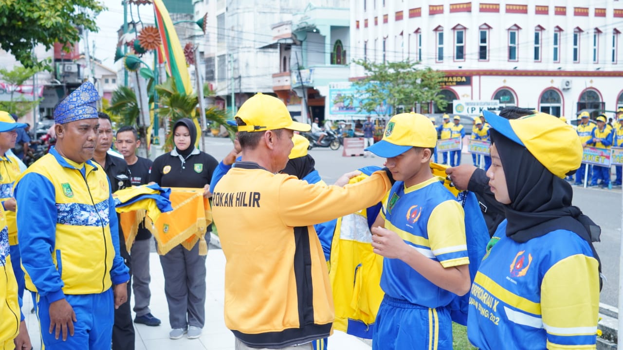 Bupati Rohil Afrizal Sintong secera resmi melepas Kontingen atlet Rokan Hilir menuju Proprov Riau di Kabupaten Kuansing.