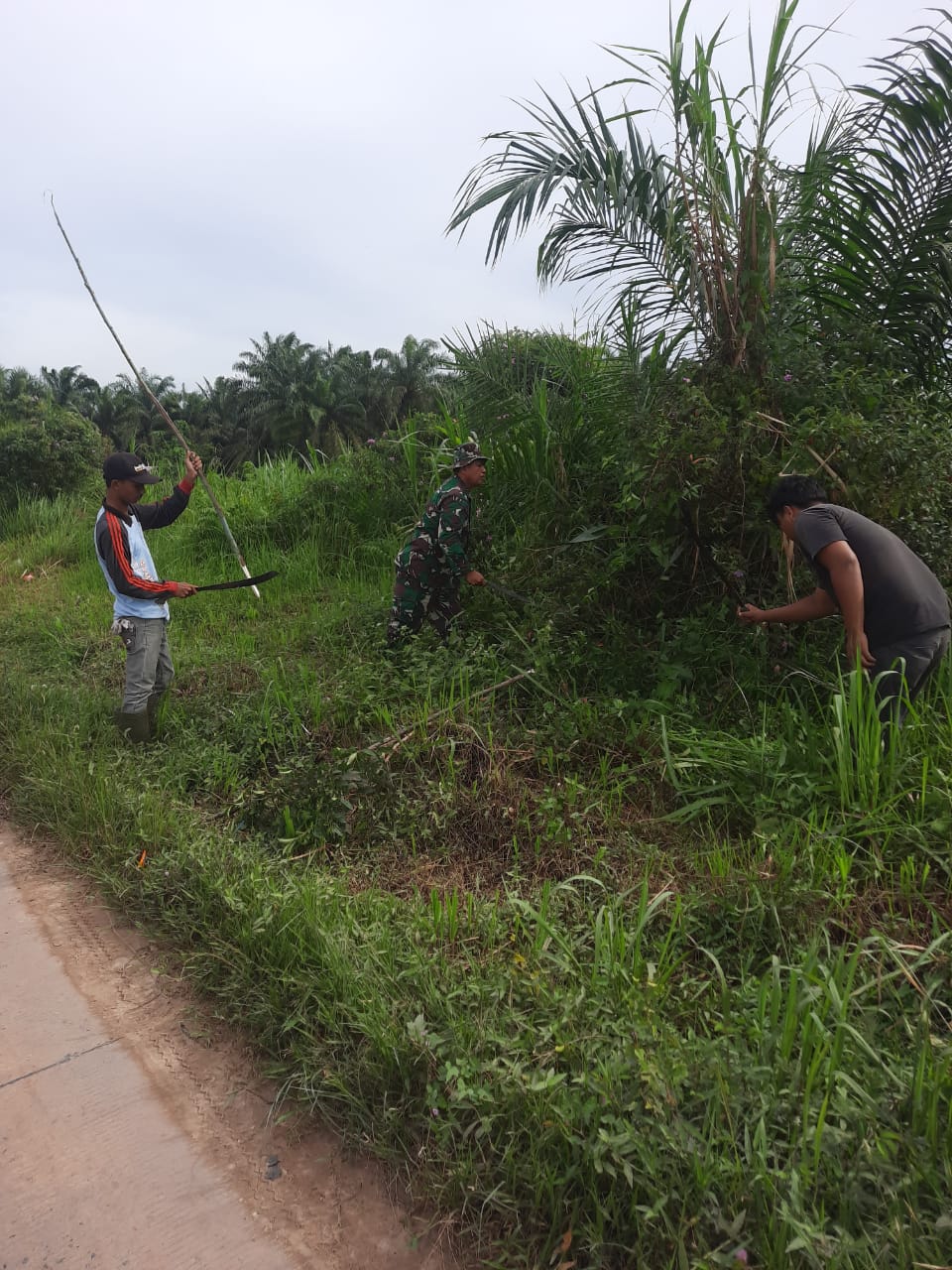 Kegiatan gotong royong (Goro) ini dilakukan di sekitaran bahu jalan kiri dan kanan di Jalan Arifin Ahmad RT 04 Kecamatan Medang Kampai.