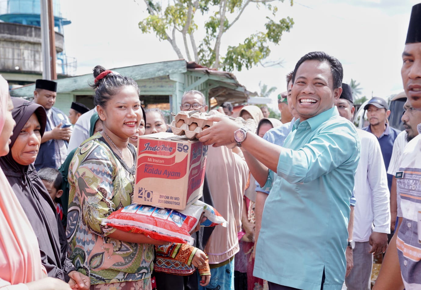 Wakil Bupati Rohil H Sulaiman bagikan sembako kepada warga terkena banjir di Bagansiapipi.