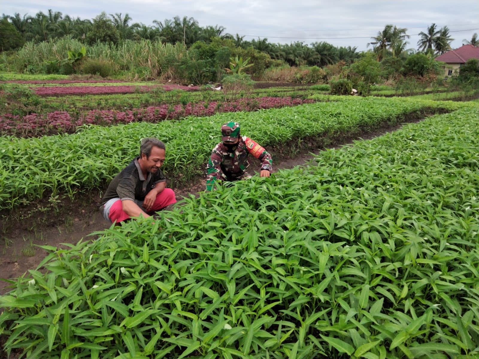 Sertu Sugianto mendatangi langsung para petani yang berdomisili di wilayah Binaannya, untuk memberikan pengarahan secara langsung mengenai tata cara penanaman kangkung serta mempersiapkan lahan untuk penanaman.