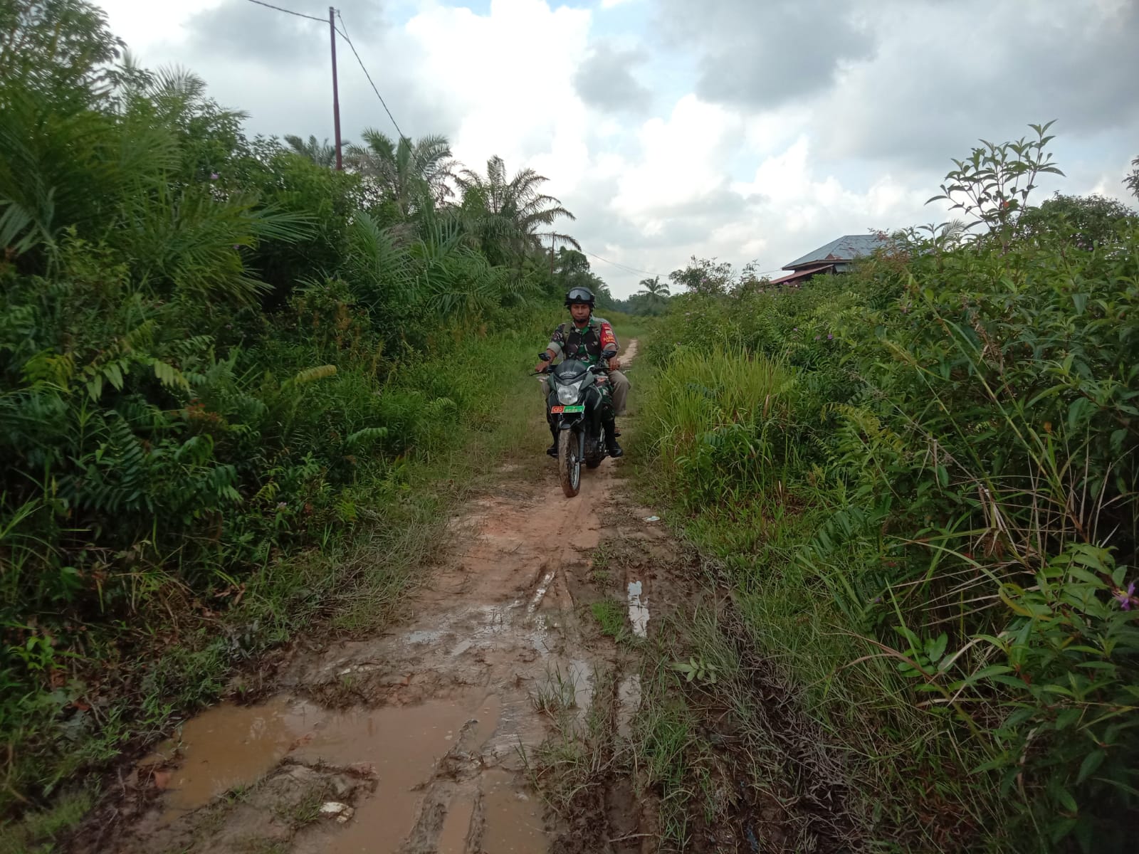 DUMAI (MR) - Sertu Ramli Babinsa Kelurahan Mundam, melaksanakan Patroli dan Sosialisasi Karhutla bersama Masyarakat, untuk mengantisipasi Pencegahan agar tidak terjadi Karhutla di Wilayah binaannya, (2/12).