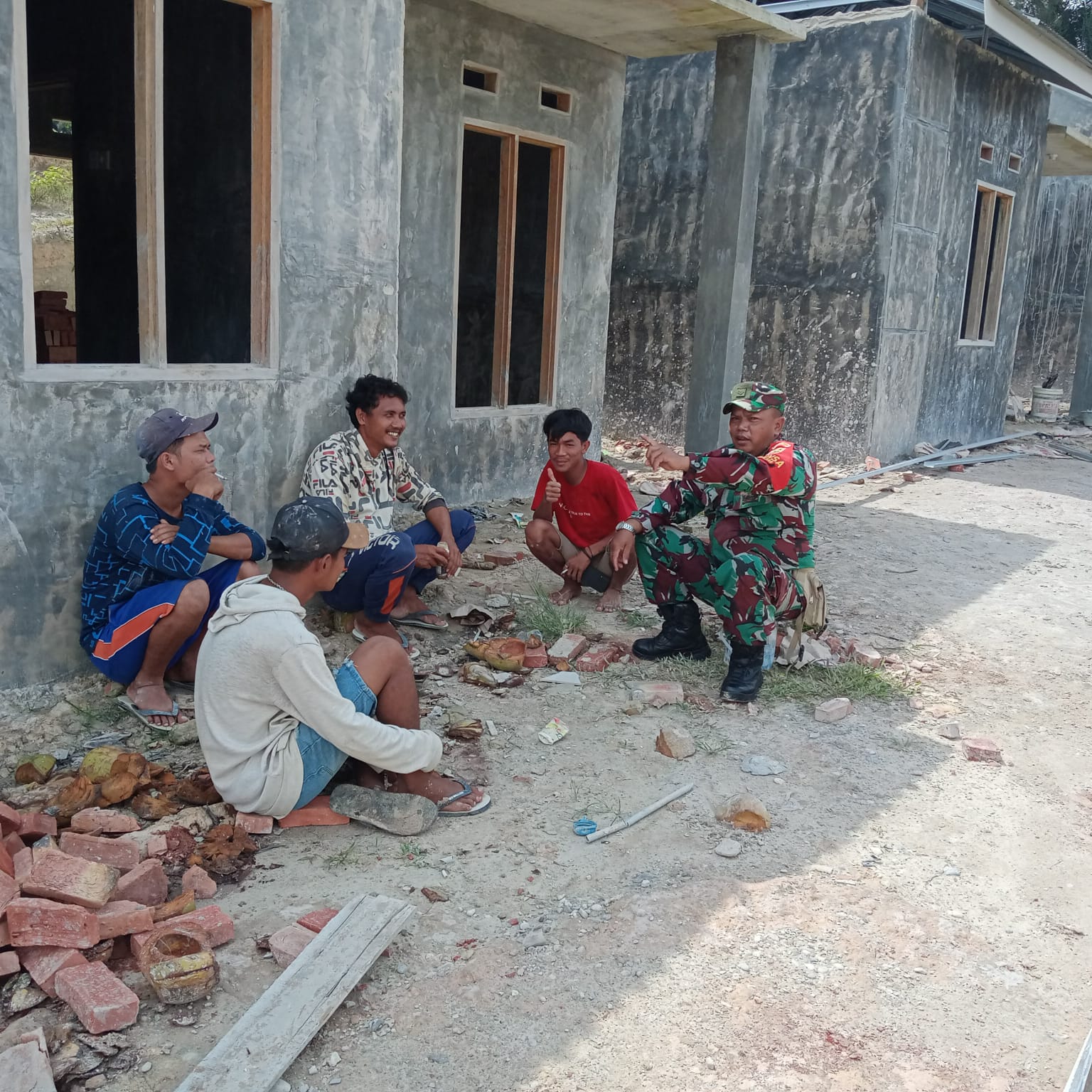 DUMAI (MR) - Babinsa Bagan besar Ramil 02 BK sertu Sareh melaksanakan kegiatan komunikasi sosial (Komsos) dengan Pekerja Perumnas Sri Mersing Jalan Inpres I , (20/12).