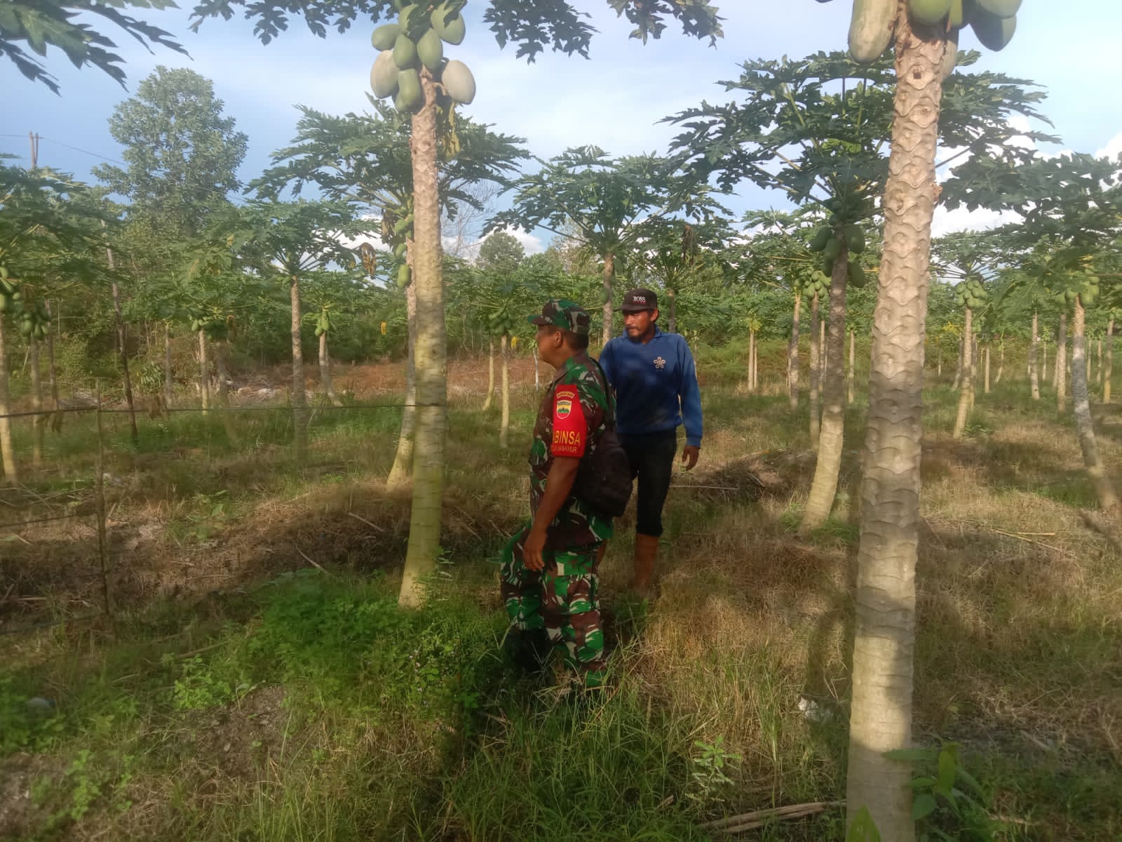 DUMAI (MR) - Babinsa Kelurahan Teluk Makmur Koramil PWK 04/MK, Serda Cerzakatno melaksanakan Patroli dan sosialisasi kegiatan pendampingan karya nyata ketahanan pangan, (22/12).