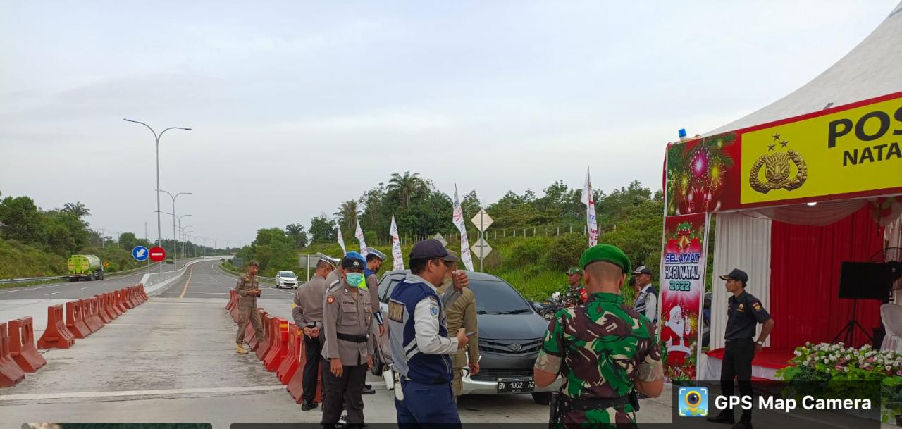 Bersama instansi terkait, Anggota Koramil 02 Serka M Andi Darmawan melaksanakan kegiatan di Pos PAM Pintu Tol Bagan Besar Kota Dumai, (27/12).