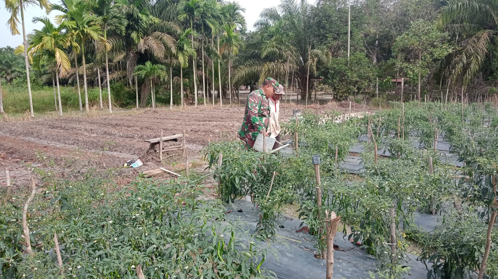 Sertu Ramli mendatangi langsung para petani yang berdomisili di daerah binaannya, untuk memberikan pengarahan secara langsung mengenai tata cara penanaman cabe.