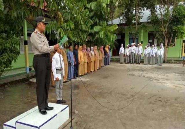 Kedatangan AKP Syafril disambut senang pihak sekolah dan siswa. Bertindak sebagai irup, Kapolsek Bengkalis mengingatkan bahaya narkoba.