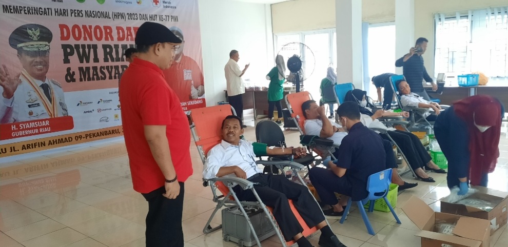 PEKANBARU (MR) - Persatuan Wartawan Indonesia (PWI) Provinsi Riau kembali menggelar bakti sosial donor darah di Gedung Pena PWI Riau, Jalan Arifin Achmad Pekanbaru, Senin (30/01/2023).