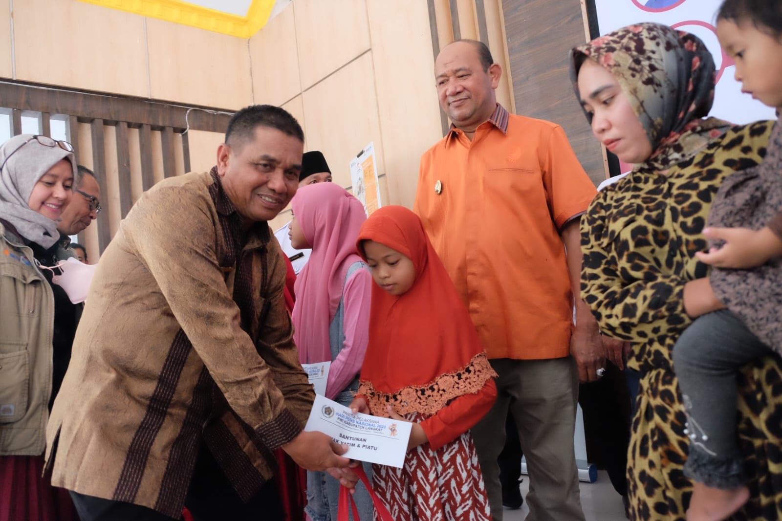Penyerahan bantuan diawali oleh Plt. Bupati Langkat H. Syah Afandin, kemudian diikuti Arif Mandu dan para donatur lainnya, yakni General Manager Corporate Social Responsibility (CSR) PT. Surya Citra Media Tbk/ Yayasan Pundi Amal Peduli Kasih Indosiar SCTV Dewi Yudho Miranti yang menyerahkan 500 paket bahan pangan, Direktur Rumah Sakit Siloam Dirga Surya Medan dr Maria Christina (mewakili Siloam Hospitals Group) yang berbagi snack dan pemeriksaan kesehatan gratis, kemudian diikuti Ketua Persatuan Wartawan (PWI) Kabupaten Langkat M Darwis Sinulingga (panitia), dan Ketua PWI Peduli Pusat yang juga panitia HPN 2023 Mohammad Nasir.