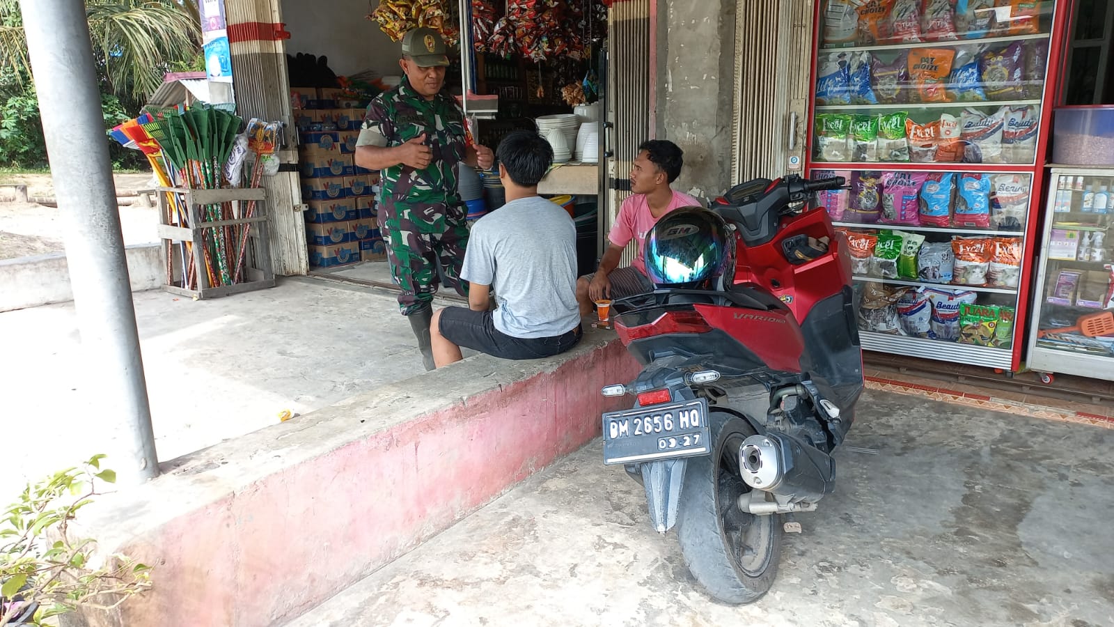 DUMAI (MR) - Koramil 02/BK melalui Babinsa Kelurahan Bukit Nenas Serda Roni Sandra Melaksanakan Komunikasi Sosial (Komsos) dengan Tokoh masyarakat dan Pemuda.