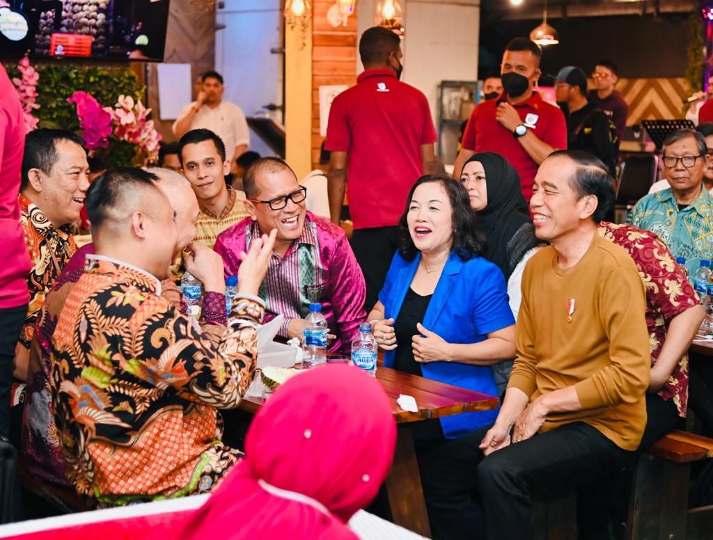 MEDAN (MR) - Suasana malam yang hangat menemani Presiden RI Joko Widodo (Jokowi) dan Ibu Iriana Joko Widodo menikmati durian bersama sejumlah pemimpin redaksi (pemred) media nasional dan media lokal Sumatra Utara. Momen tersebut terjadi di Si Bolang Durian, Kota Medan, Provinsi Sumatra Utara, pada Rabu (08/02/2023) malam.