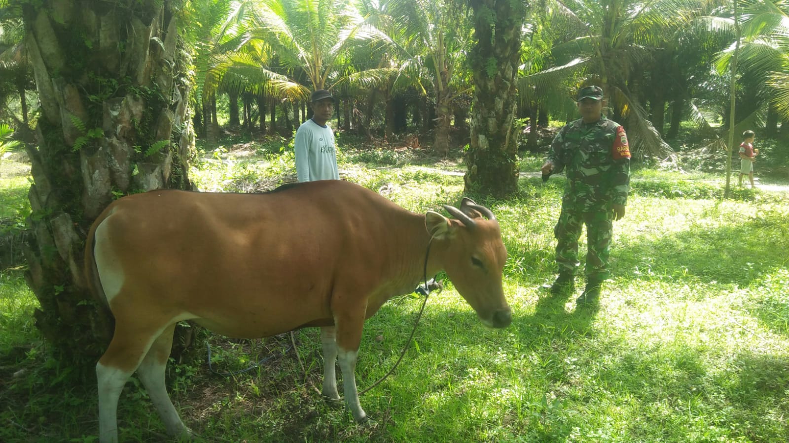 Selain itu, Serda Cerzakatno juga memberikan sosialisasi kepada Samsuri mengenai cara menjaga kebersihan kandang dan lingkungan sekitar agar hewan ternak tetap sehat dan terhindar dari PMK.