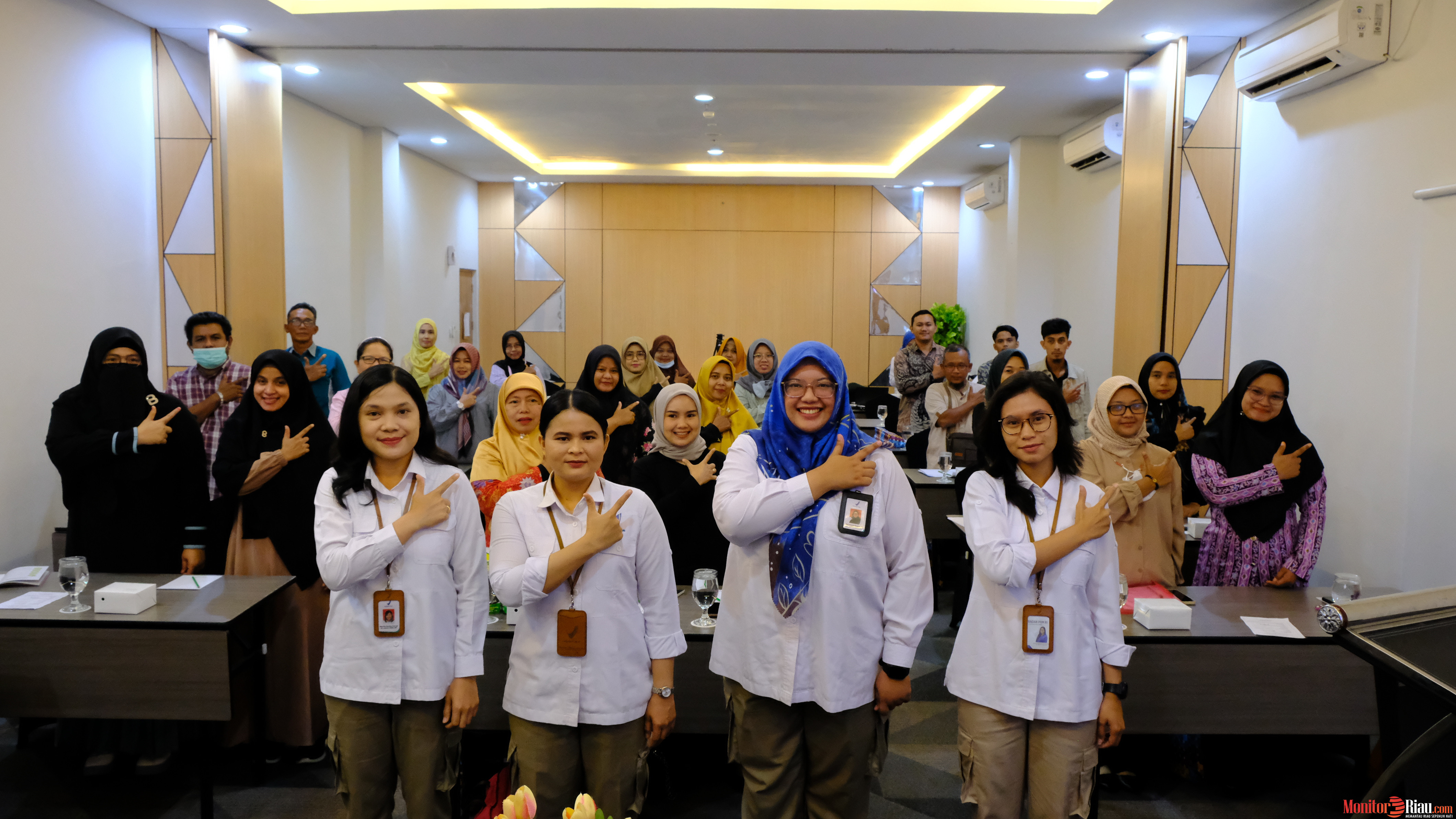 DUMAI (MR) - Guna meningkatkan daya saing UMKM Pangan Olahan serta meningkatkan pengetahuan dan keterampilan tentang penerapan Cara Produksi Pangan Olahan yang Baik (CPPOB), Loka POM di Kota Dumai menyelenggarakan kegiatan Bimtek Penerapan CPPOB di UMK Pangan Olahan selama 3 hari (14/03 -16/03) secara hybrid. Kegiatan daring dilaksanakan selama 2 hari (14/03 – 15/03) melalui zoom meeting dan dilanjutkan secara luring di Hotel Patra Dumai (16/03/2023).