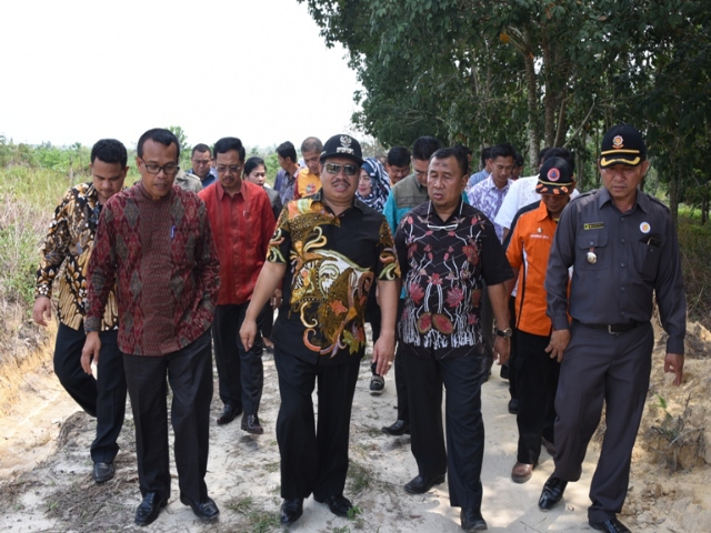 DURI (MR) - Usai menghadiri acara Hari Ulang tahun ke lima sekaligus peresmian logo di halaman Rumah Sakit Umum Daerah (RSUD) Mandau, Sabtu (11/2/2017) lalu. Bupati Bengkalis Amril Mukminin melakukan kunjungan kerja meninjau lahan pembangunan "Islamic Centre" di Kecamatan Mandau.