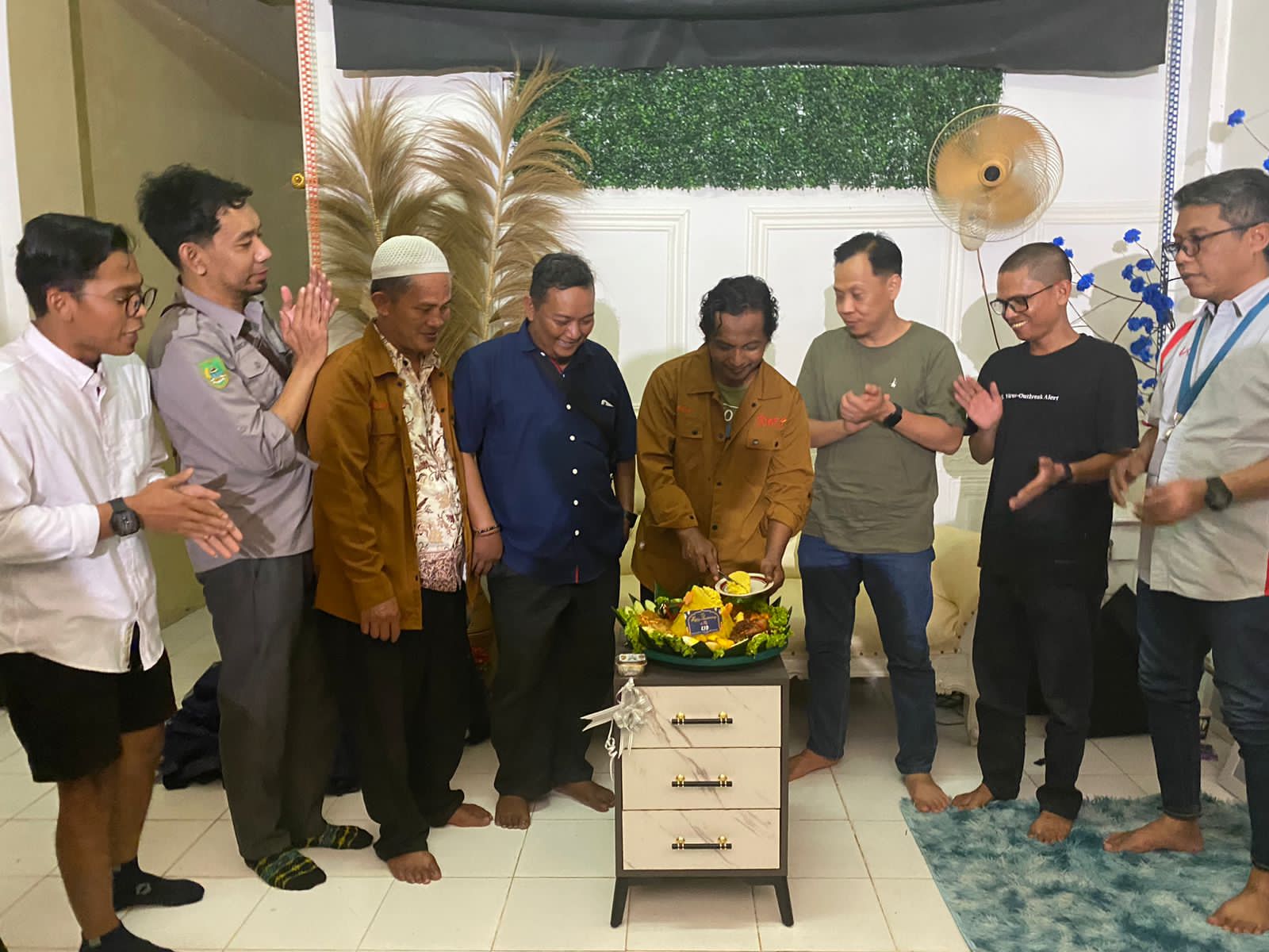 Puncak acara perayaan ulang tahun ke-12 Komunitas Fotografi Dumai (KFD) ditandai dengan pemotongan tumpeng dan foto bersama seluruh anggota komunitas yang hadir.