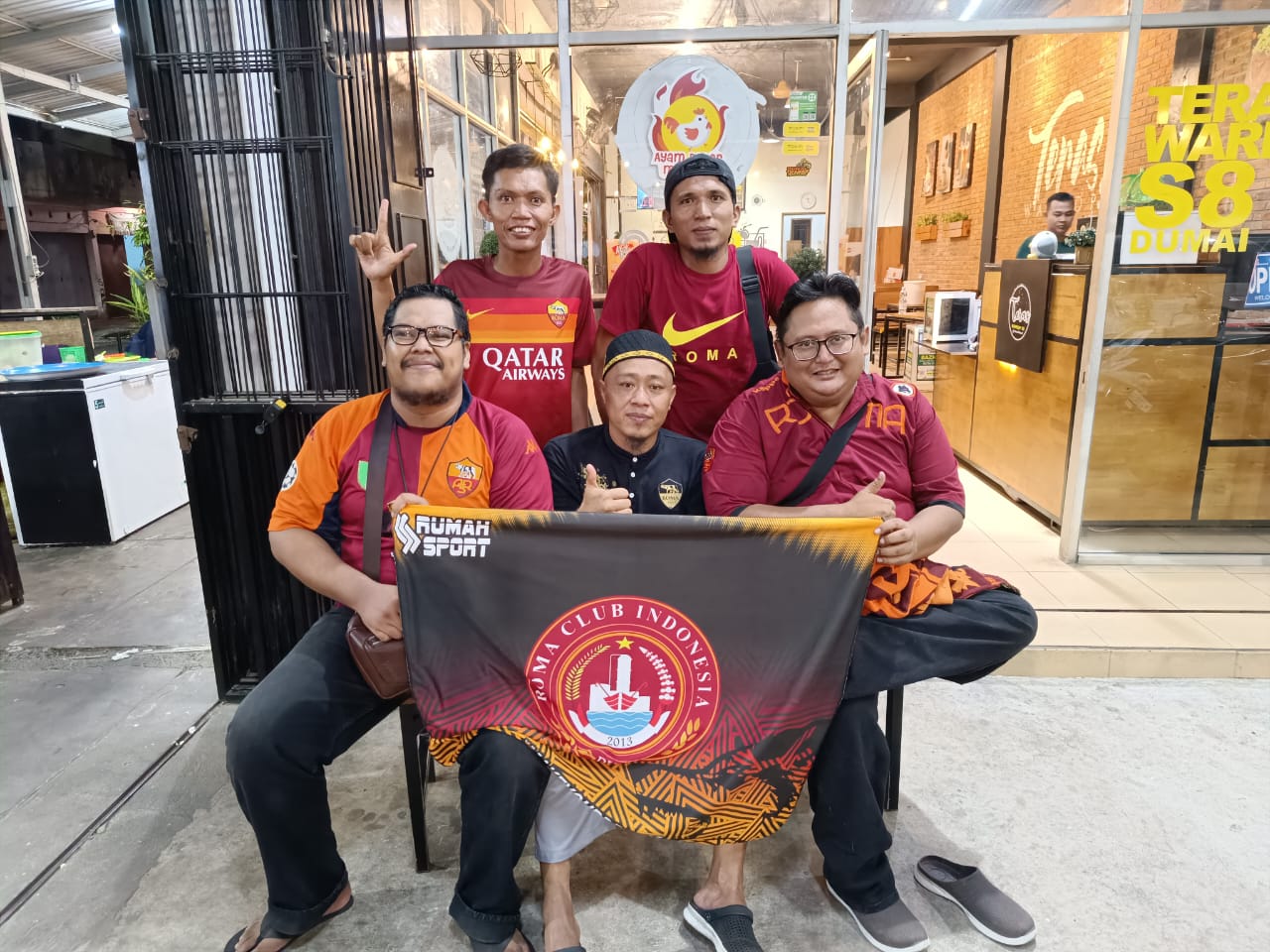 DUMAI (MR) - Keluarga besar, Fans klub sepakbola AS Roma, RCI Dumai & Romanita Dumai menggelar kegiatan berbuka bersama di Cafe Teras Warkop S8 di Jalan Janur Kuning Dumai, Minggu (16/4/2023).