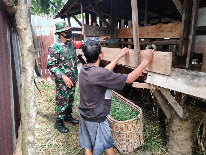 DUMAI (MR) - Babinsa Sertu Sugianto dari Koramil-01 Dumai, Kecamatan Dumai Barat, melaksanakan kegiatan sosialisasi tentang penyakit mulut dan kuku (PMK) pada hewan milik warga bernama Sukoco di Kelurahan STDI pada Selasa, 18 April 2023. Kegiatan ini dilakukan dengan tujuan untuk meningkatkan kesadaran masyarakat tentang pentingnya menjaga kesehatan hewan peliharaan dan mencegah penyebaran PMK.